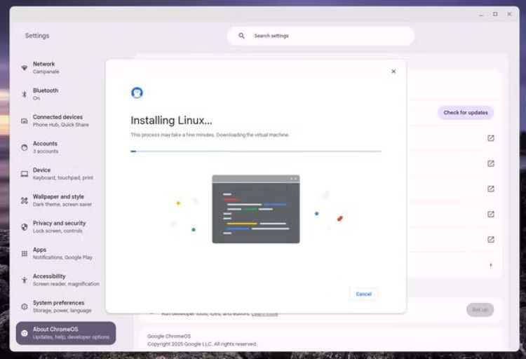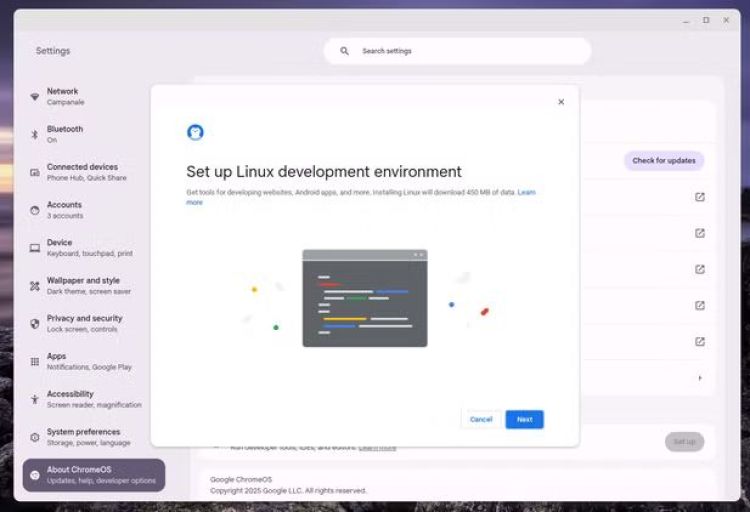 ChromeOS dựa trên Linux, cho phép cài đặt các ứng dụng Linux dễ dàng trong môi trường đầy đủ tính năng trên Chromebook.