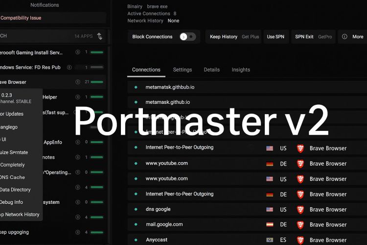 Portmaster tích hợp trực tiếp vào ngăn xếp mạng của hệ thống, cho phép nó xem và hiển thị mọi kết nối đến và đi trên từng ứng dụng. Điều này có nghĩa là bạn có thể xem chính xác từng ứng dụng đang làm gì khi trực tuyến và dừng ứng dụng đó nếu cần.