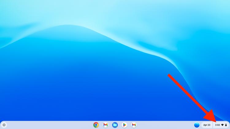 Trước tiên, chúng tôi sẽ hướng dẫn bạn cách sử dụng công cụ Chụp màn hình tích hợp của Chromebook. Công cụ này có thể thực hiện cả ảnh chụp màn hình và quay video màn hình. Để bắt đầu, hãy nhấp vào đồng hồ trên Kệ (thanh tác vụ) ở góc dưới bên phải để mở bảng Cài đặt nhanh.