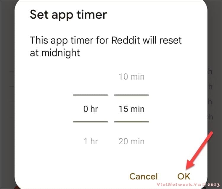 Nhập giới hạn thời gian mong muốn và nhấn "OK" hoặc "Xong".