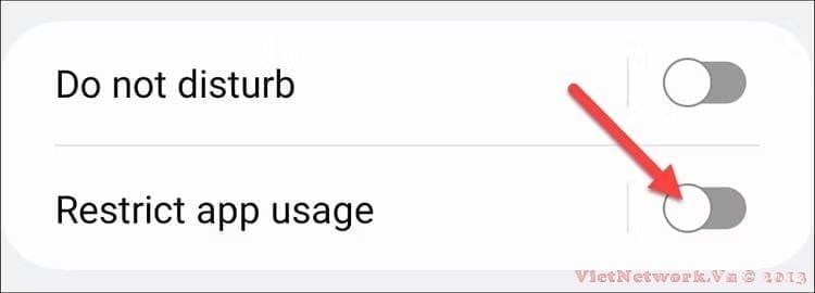 Để hạn chế ứng dụng trong chế độ này, hãy bật "Hạn chế sử dụng ứng dụng".