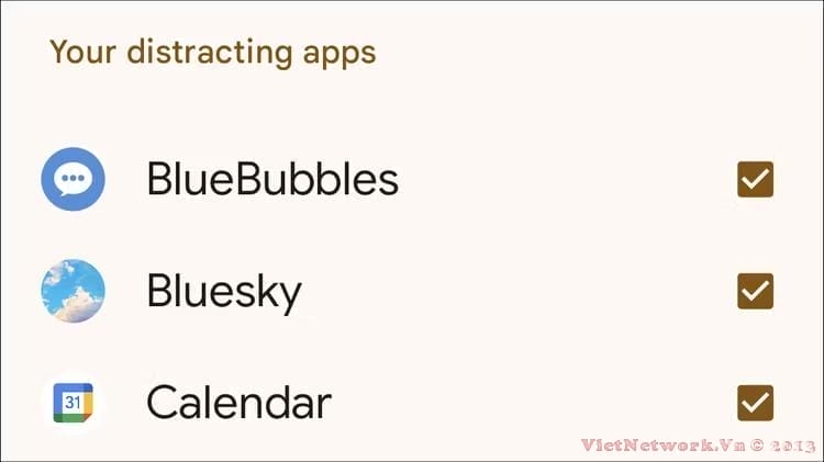 Chọn ứng dụng bạn muốn tạm dừng khi bật Focus Mode.