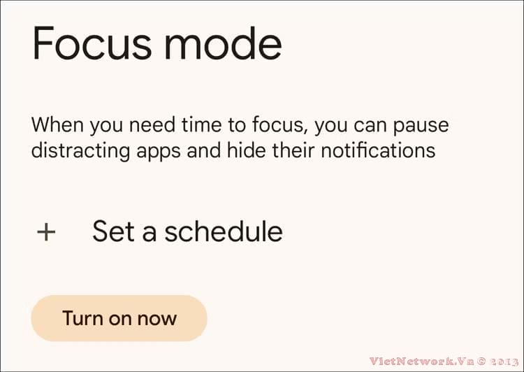 Bạn có thể thêm ô "Focus Mode" vào bảng thông báo nếu bạn không muốn truy cập ứng dụng Cài đặt mỗi lần. Lựa chọn thay thế cho điện thoại Android khác