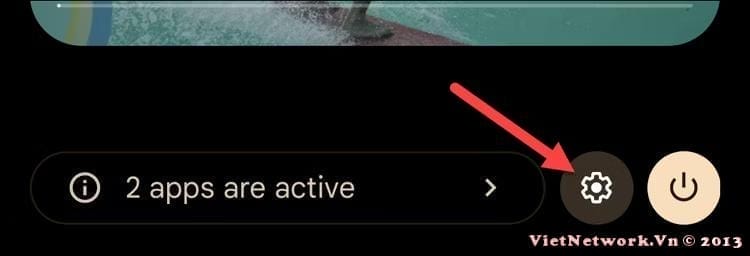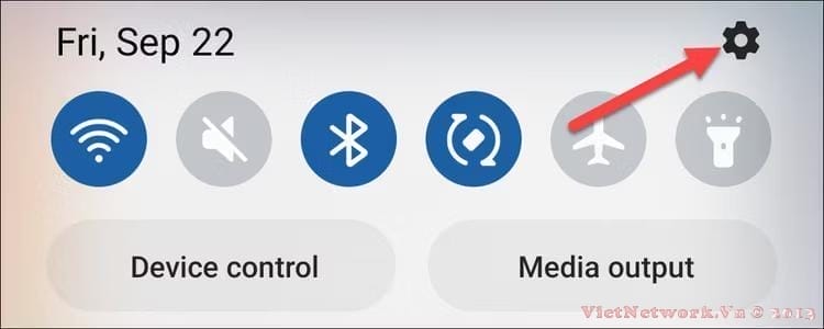 Đầu tiên, vuốt xuống một lần từ trên cùng của màn hình và nhấn vào biểu tượng bánh răng để mở Cài đặt.