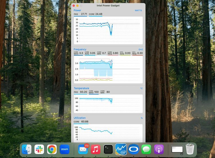Giống như Windows, việc kiểm tra tần số tăng cường hoạt động của CPU trên macOS yêu cầu một công cụ cụ thể. Chúng tôi sẽ sử dụng Intel Power Gadget.