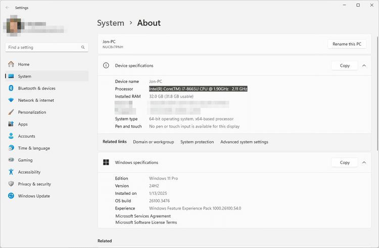 Để kiểm tra xung nhịp cơ bản của CPU trên Windows, hãy vào Cài đặt > Hệ thống > Giới thiệu.