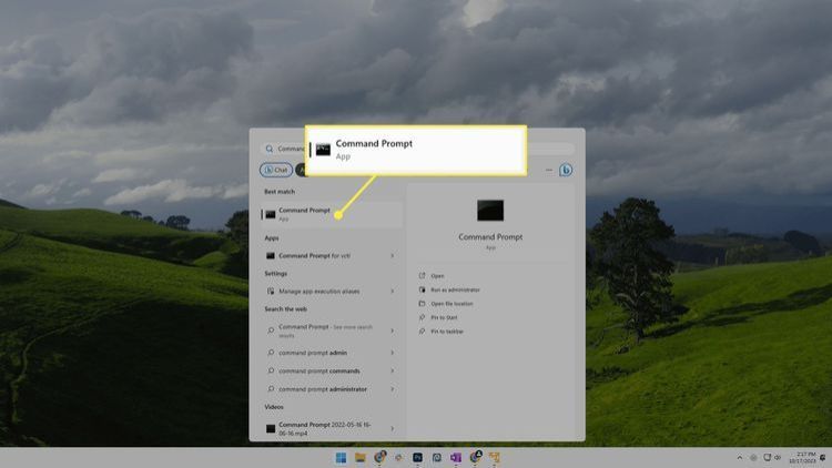 Mở Command Prompt bằng cách tìm kiếm nó trong menu Start.