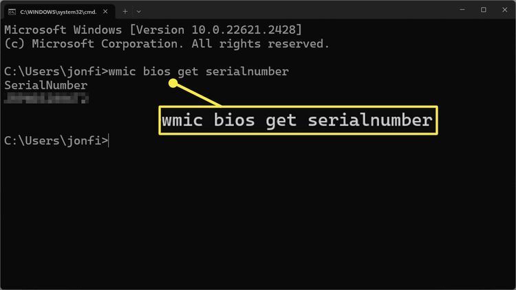 Nếu nhãn đã bị hỏng hoặc bị gỡ bỏ, một cách khác để lấy số sê-ri là thông qua chính máy tính. Miễn là máy tính xách tay của bạn vẫn hoạt động, bạn cũng có thể lấy số sê-ri bằng Command Prompt.