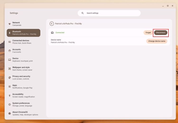 2. Ngắt kết nối AirPods của bạn khỏi Chromebook