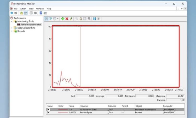 Trong thanh bên trái, điều hướng đến Monitoring Tools > Performance Monitor. Nhấp vào "Add" hoặc nhấn Ctrl+N và thêm Process > Private Bytes. Chọn "OK." Quay lại màn hình chính, kiểm tra xem mức sử dụng bộ nhớ của ứng dụng có tiếp tục tăng nhưng không bao giờ giảm không.