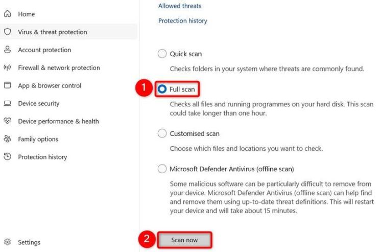 Đôi khi, phần mềm độc hại hoặc vi-rút đã lây nhiễm PC của bạn có thể sử dụng RAM. Điều này có thể gây ra sự gia tăng đột ngột trong việc sử dụng RAM, khiến dung lượng RAM ít hơn để các ứng dụng khác sử dụng. Trong trường hợp này, hãy chạy quét phần mềm độc hại để tìm và loại bỏ mọi mối đe dọa khỏi máy tính của bạn.