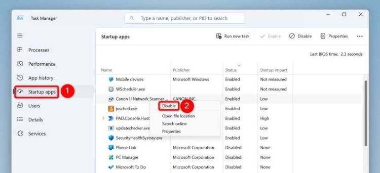 Để ngăn ứng dụng tự động khởi chạy khi bạn bật máy tính, hãy nhấp chuột phải vào ứng dụng đó trong danh sách và chọn "Tắt". Thực hiện thao tác này cho tất cả các ứng dụng mà bạn không muốn tự động khởi chạy.