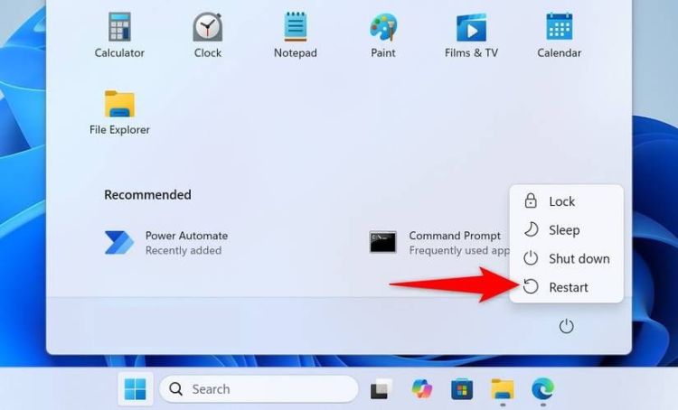Trước khi khởi động lại máy, hãy đảm bảo bạn đã lưu mọi công việc chưa lưu trong ứng dụng của mình. Sau đó, mở Menu Bắt đầu, nhấp vào biểu tượng Nguồn và chọn "Khởi động lại".
