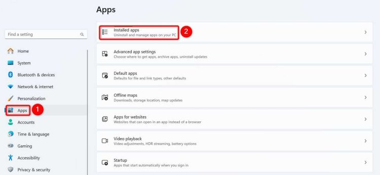 Để thực hiện điều đó, hãy khởi chạy Cài đặt bằng cách nhấn Windows+i. Từ thanh bên trái, chọn "Ứng dụng". Trên ngăn bên phải, chọn "Ứng dụng đã cài đặt".