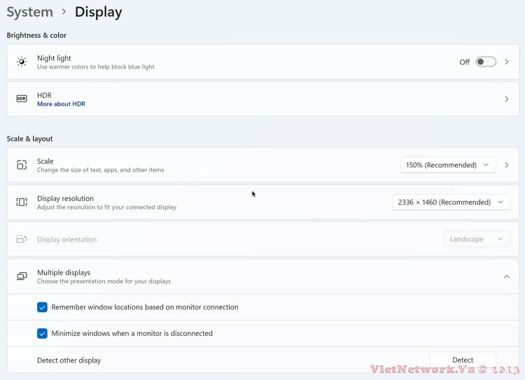 Hãy dành chút thời gian để định cấu hình TV của bạn sao cho độ phân giải, hướng và vị trí chính xác. Trên Windows, bạn có thể đi tới Bắt đầu > Cài đặt > Hệ thống > Hiển thị để xem màn hình của bạn được liệt kê và thay đổi độ phân giải, hướng cũng như cách hoạt động của màn hình trong trình đơn thả xuống "Nhiều màn hình".