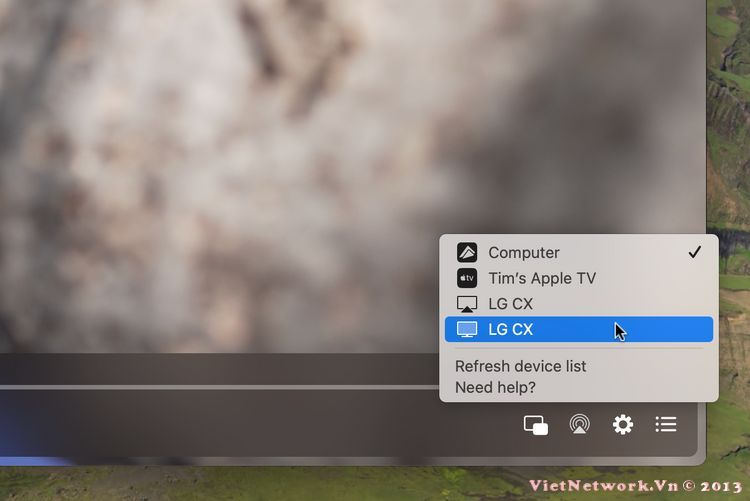 Trên máy Mac, bạn có thể sử dụng AirPlay để phản chiếu toàn bộ màn hình của mình sang thiết bị AirPlay như Apple TV (hộp giải mã tín hiệu, không phải đăng ký phát trực tuyến). Nhiều TV mới đã hỗ trợ AirPlay mà không cần Apple TV.