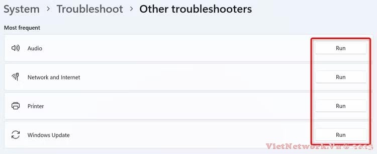 Tìm công cụ khắc phục sự cố để khởi chạy. Trên Windows 11, bên cạnh trình khắc phục sự cố, hãy chọn "Chạy".