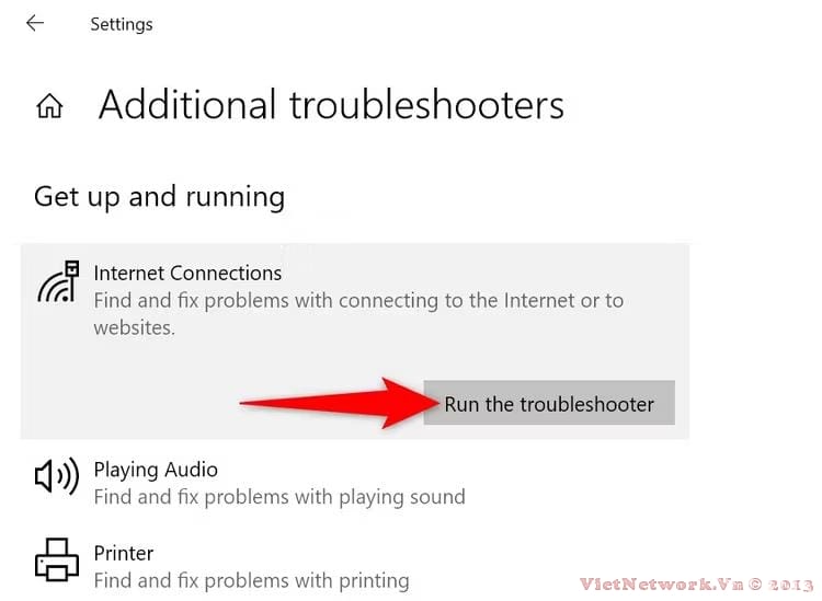 Trên Windows 10, nhấp vào trình khắc phục sự cố và chọn "Chạy trình khắc phục sự cố".