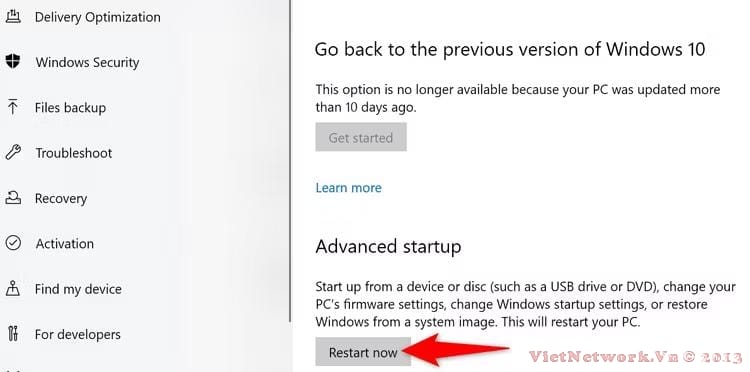 Để khởi động PC Windows 10 của bạn ở chế độ an toàn, hãy vào Cài đặt > Cập nhật & Bảo mật > Khôi phục. Trong phần "Khởi động nâng cao", nhấp vào "Bắt đầu".