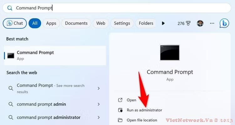 Để làm điều đó, hãy mở Menu Bắt đầu, tìm kiếm Dấu nhắc Lệnh và chọn "Chạy với tư cách Quản trị viên".