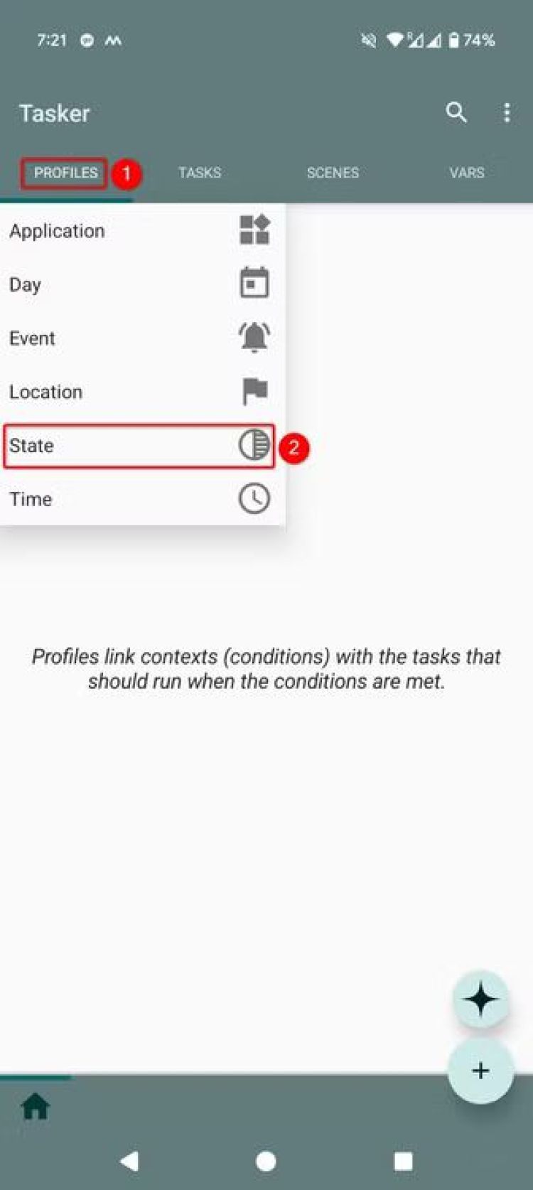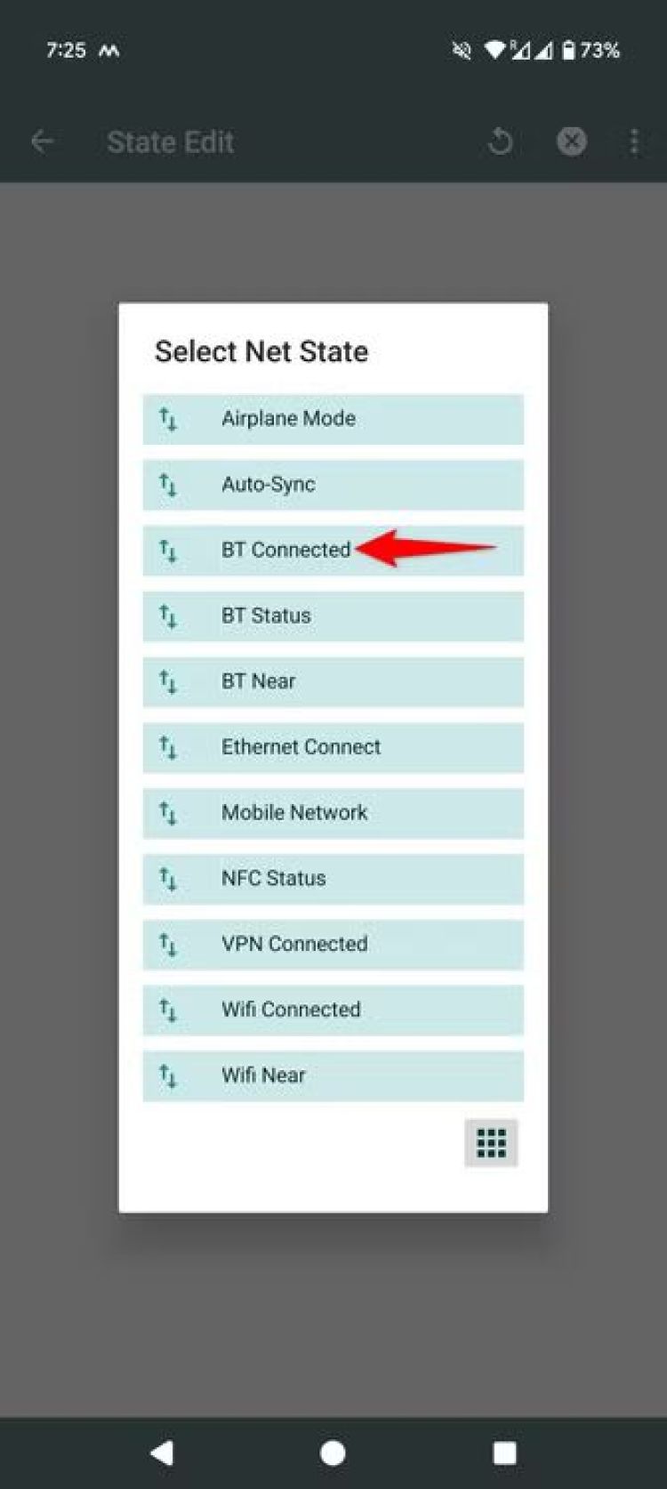 Cấp cho ứng dụng các quyền cần thiết. Trên giao diện chính, trong tab Profiles, chọn dấu "+" (cộng) và chạm vào "State". Nếu tai nghe của bạn là tai nghe có dây, hãy chọn Hardware > Headset Plugged. Nếu tai nghe của bạn là tai nghe không dây, hãy chọn Net > BT Connected và nhập tên tai nghe của bạn.