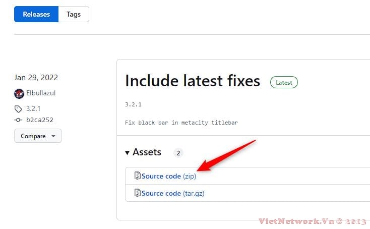 Trong thẻ phát hành mới nhất (3.2.1 tại thời điểm viết bài), hãy tải xuống chủ đề Windows 10 của bạn bằng cách nhấp vào "Mã nguồn (ZIP)".