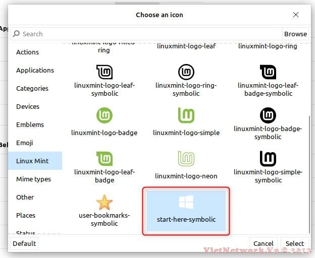 Ví dụ: trong Cinnamon, tôi có thể thay thế logo Mint trong menu Bắt đầu bằng cách nhấp chuột phải vào biểu tượng đó và chọn Cấu hình > Giao diện > Biểu tượng.