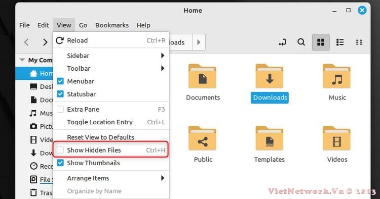 Tại thời điểm này, bạn sẽ cần hiển thị các tệp ẩn trong trình duyệt tệp của mình. Bạn thường có thể tìm thấy cài đặt này trong menu thả xuống Chế độ xem, như trường hợp của Nemo.