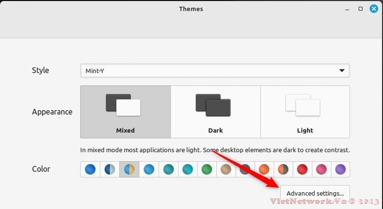 Sau đó, chúng ta cần chọn chủ đề Windows 10 cho mọi danh mục có sẵn. Để có được khả năng này trong Cinnamon, tôi cần nhấp vào "Cài đặt nâng cao".