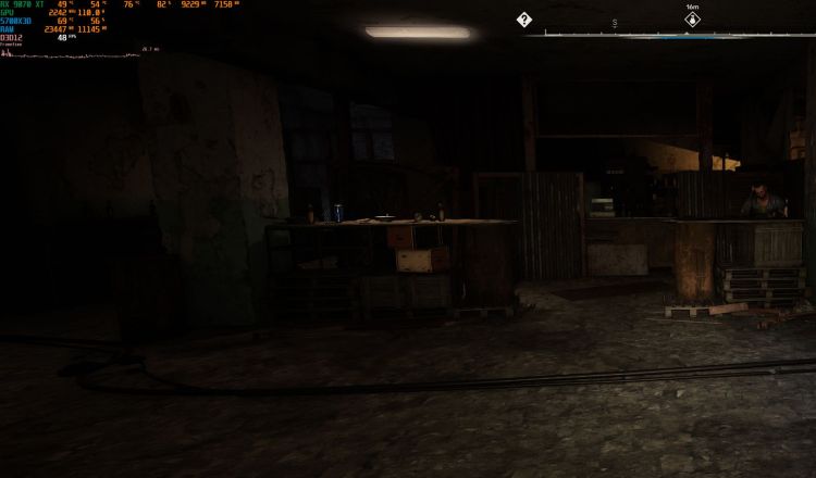 Tệ hơn nữa, trò chơi giảm xuống còn khoảng 30 FPS với tình trạng giật liên tục, nặng nề khi di chuyển quanh các khu định cư, khiến trò chơi gần như không thể chơi được. Nâng cấp CPU lên Ryzen 5700X3D đã giải quyết được hầu hết các vấn đề, nhưng tốc độ khung hình không vượt quá khoảng 50 FPS trong các khu định cư cùng với việc sử dụng GPU kém, như bạn có thể thấy trên ảnh chụp màn hình bên dưới.