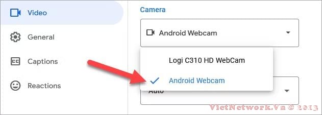 PC của bạn bây giờ sẽ xem điện thoại của bạn dưới dạng webcam, điều đó có nghĩa là bạn chỉ cần chọn nó làm nguồn video trong ứng dụng hội nghị truyền hình mà bạn chọn. Đây là Google Meet chẳng hạn.