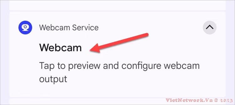 Bạn có một số tùy chọn trên điện thoại Android của mình về giao diện của nguồn cấp dữ liệu webcam. Nhấn vào thông báo "Webcam" để xem bản xem trước và điều khiển cấu hình.