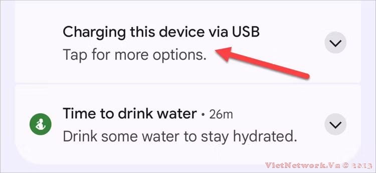 Trước tiên, hãy cắm thiết bị Android của bạn vào PC Windows, Mac hoặc Linux bằng cáp USB. Một thông báo sẽ xuất hiện trên thiết bị Android của bạn có nội dung "Đang sạc thiết bị này qua USB"—hãy chọn thông báo đó.