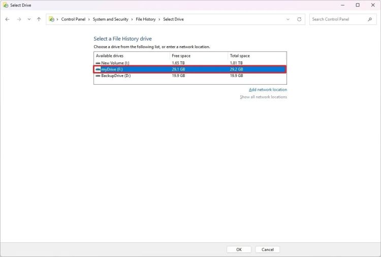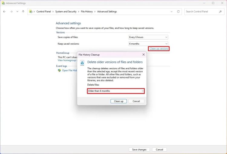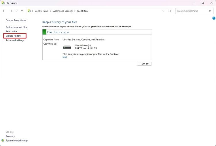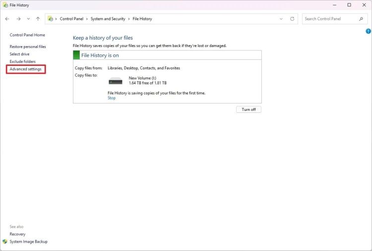 Sau khi bạn hoàn tất các bước, Lịch sử tệp sẽ giảm dung lượng lưu trữ được sử dụng trong ổ đĩa sao lưu.