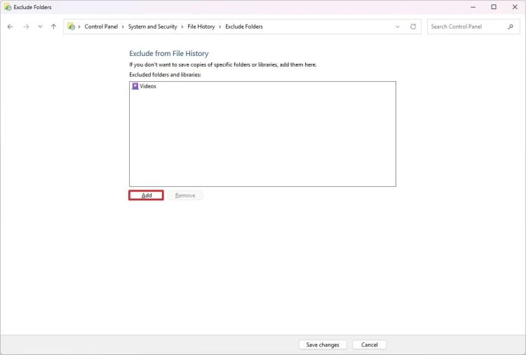 Chọn các thư mục để loại trừ khỏi Lịch sử tệp.