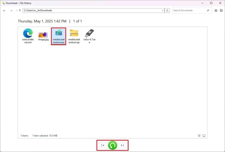 Nhấp vào nút trái và phải ở phía dưới để điều hướng dòng thời gian Lịch sử tệp.