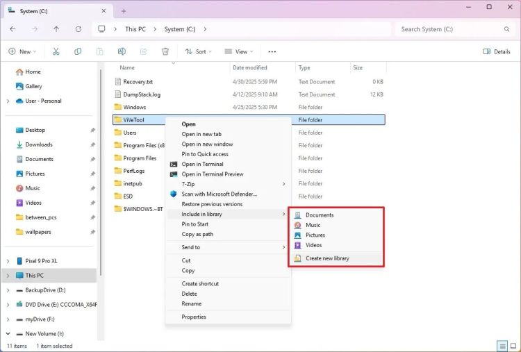 Vì Lịch sử tệp chỉ sao lưu các tệp ở các vị trí cụ thể, nếu bạn có các tệp và thư mục được lưu trữ ở những nơi khác mà bạn muốn sao lưu, bạn cần thêm chúng vào một trong các "Thư viện" theo cách thủ công. Bạn có thể thực hiện việc này bằng cách nhấp chuột phải vào thư mục, chọn "Hiển thị thêm tùy chọn", sau đó "Bao gồm trong thư viện" và chọn thư viện hiện có hoặc tạo thư viện mới.