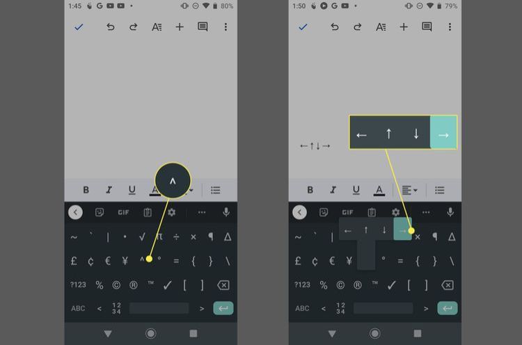 Nếu bạn đang gõ trên thiết bị Android và cần một mũi tên, bàn phím có thể dễ dàng đáp ứng nhu cầu này.