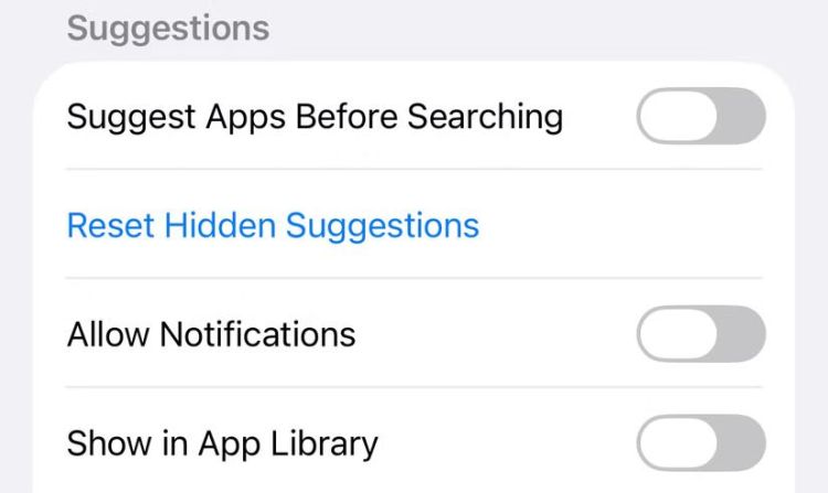 Khi vào menu, hãy vuốt xuống cho đến khi bạn thấy tiêu đề "Gợi ý" rồi chạm vào các nút chuyển đổi bên cạnh các mục sau: