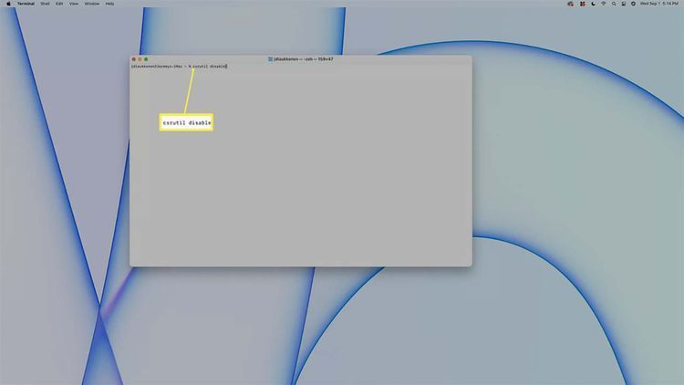 Gõ lệnh `csrutil disable` và nhấn Enter.
