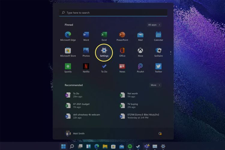 Nhấp vào nút Bắt đầu để mở menu Bắt đầu.