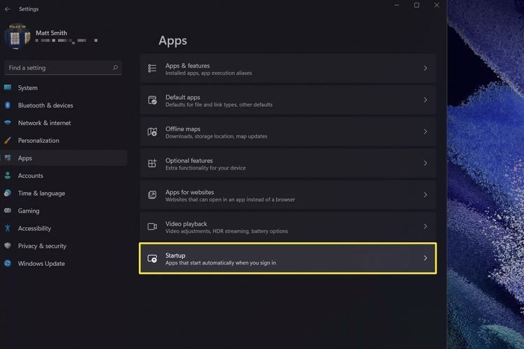 Vào Cài đặt, nhấp vào Ứng dụng, sau đó chọn Khởi động để quản lý chương trình khi khởi động.