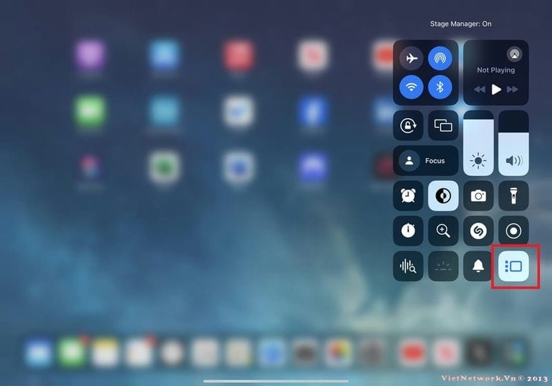 Để bật Trình quản lý giai đoạn, hãy vuốt xuống từ phía trên bên phải màn hình để kích hoạt Trung tâm điều khiển, sau đó nhấn vào biểu tượng Trình quản lý giai đoạn (nó trông giống như một hộp lớn có ba hộp nhỏ hơn bên cạnh).