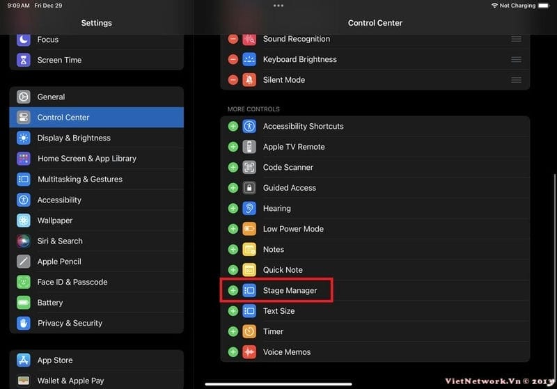 Để có thể truy cập Stage Manager một cách nhanh chóng, hãy đi tới Cài đặt > Trung tâm điều khiển và thêm tính năng này vào Trung tâm điều khiển. Nếu Trình quản lý giai đoạn nằm trong phần Điều khiển khác, hãy nhấn vào biểu tượng dấu cộng của nó để thêm nó vào danh sách trong phần Điều khiển đi kèm.