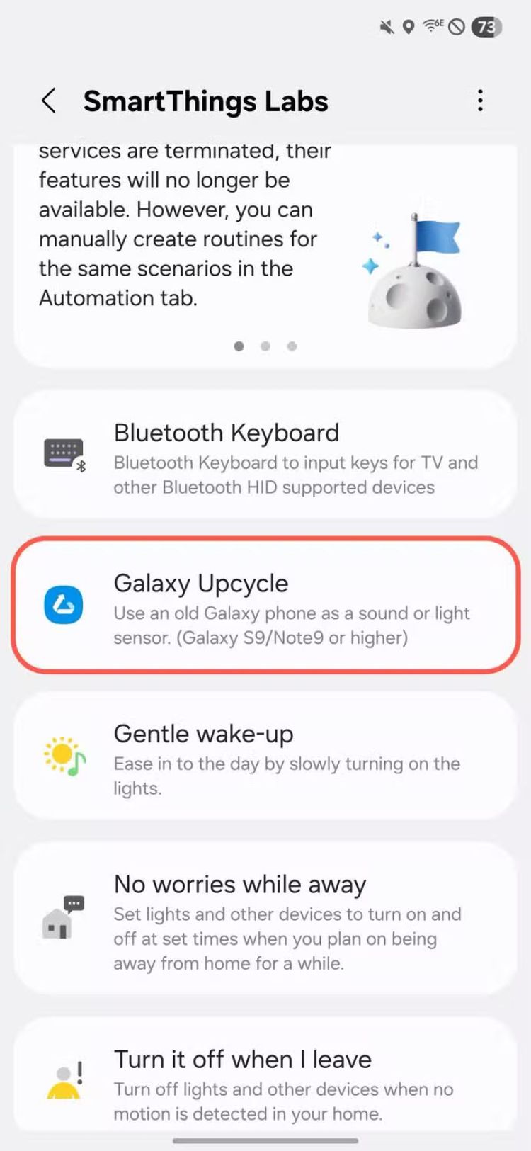 Trước hết, điện thoại hoặc máy tính bảng cũ của bạn không được quá cũ. Nó cần phải là Galaxy S9, Note 9 hoặc đời mới hơn. Về cơ bản, hầu hết các điện thoại Samsung chạy Android 9 trở lên đều hoạt động được. Thiết bị chính cũng cần phải là điện thoại Samsung, thật không may. Galaxy Upcycle được tìm thấy trong phần "Labs" của ứng dụng SmartThings, nhưng nó không có trên các điện thoại không phải của Samsung.