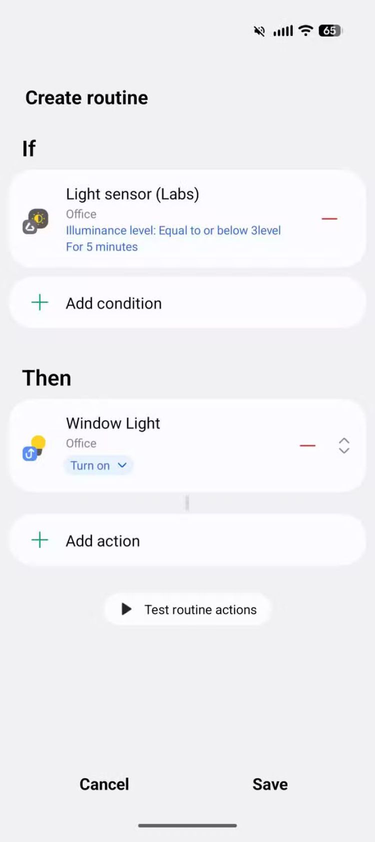 Cảm biến ánh sáng : Cảm biến ánh sáng môi trường trên điện thoại đo độ sáng của phòng theo thang điểm từ 1 đến 7. Điều này chính xác hơn nhiều so với chế độ "ngày/đêm" đơn giản. Tôi đặt điện thoại trong văn phòng và thiết lập một quy trình tự động bật đèn phía sau màn hình nếu chỉ số đo giảm xuống dưới 3.