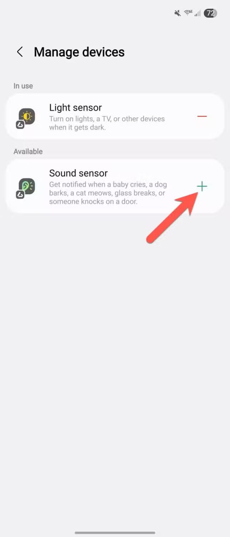Bạn có thể sử dụng thiết bị của mình như cả cảm biến ánh sáng và cảm biến âm thanh cùng một lúc. Mở Galaxy Upcycle và chạm vào biểu tượng menu ở góc trên cùng của màn hình cảm biến. Chọn "Quản lý thiết bị" rồi chạm vào biểu tượng dấu cộng bên cạnh cảm biến mà bạn chưa kích hoạt. Làm theo các bước để thiết lập.