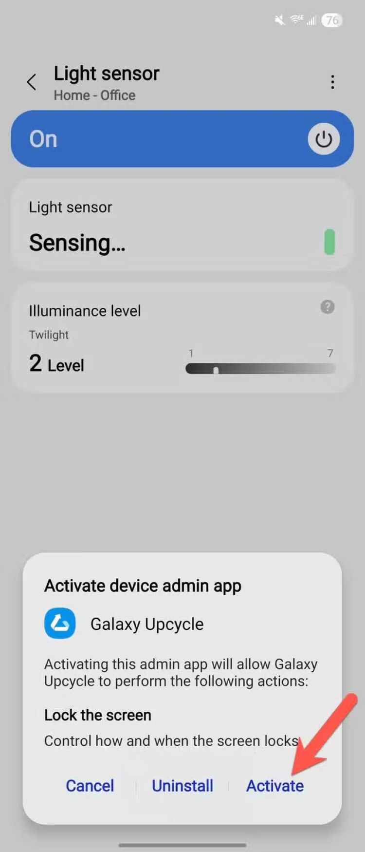 Giờ bạn sẽ thêm "cảm biến" vào ngôi nhà của mình trong SmartThings. Gán cảm biến cho một phòng cụ thể và sau đó đặt tên mới cho nó nếu bạn muốn. Sau khi cảm biến được thêm vào, bạn có thể nhấn "Tắt màn hình" để đưa điện thoại vào chế độ giám sát tiết kiệm pin Upcycle. Điều này yêu cầu cấp quyền quản trị cho ứng dụng trên điện thoại của bạn. Vậy là xong!