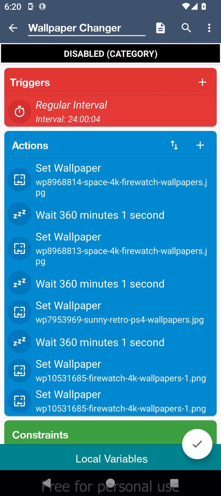 Cứ sau 24 giờ, macro sẽ được kích hoạt và hình nền sẽ tự động thay đổi. Sau đó, MacroDroid sẽ đợi 360 phút (hoặc sáu giờ) và chuyển đổi hình nền một lần nữa. Quy trình này sẽ lặp lại cho đến khi cả bốn hình nền được thay đổi tuần hoàn.