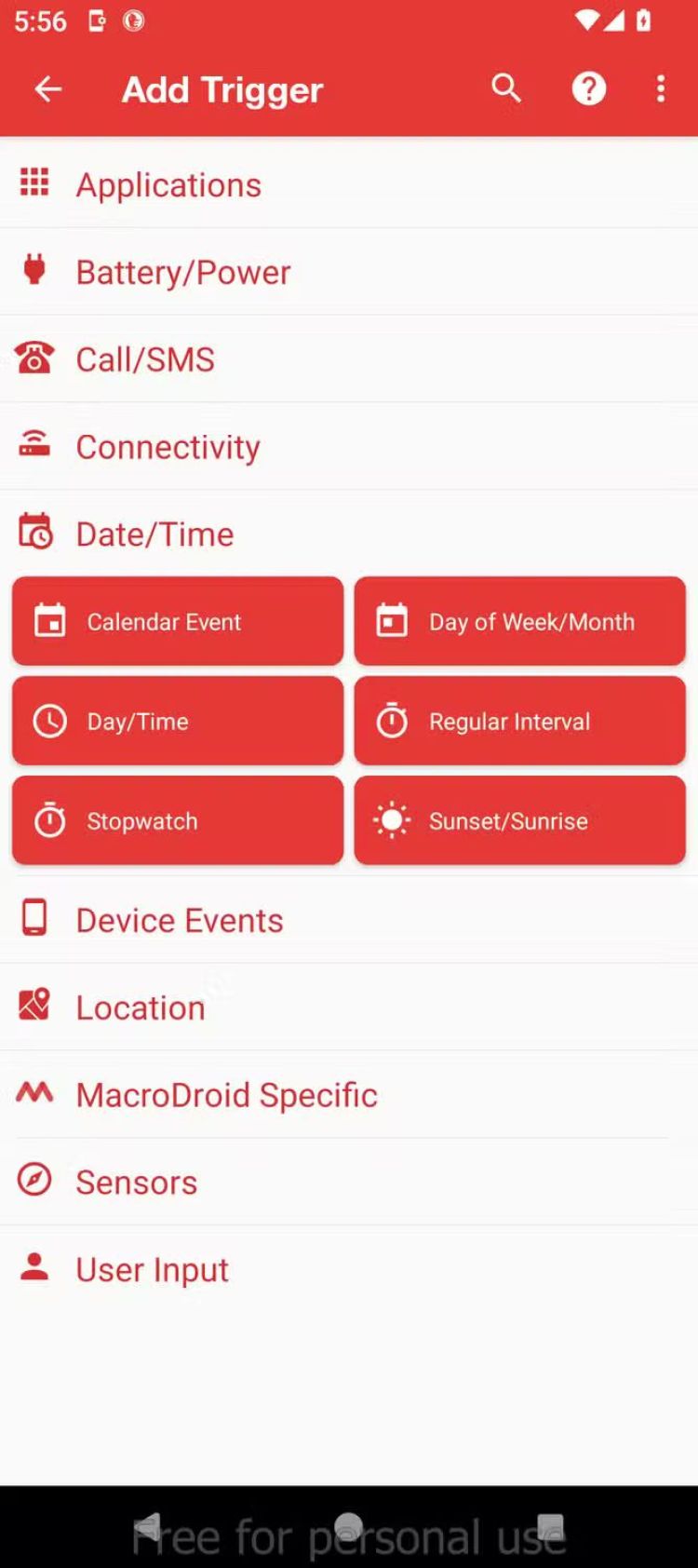 Bắt đầu bằng cách tạo một trigger theo thời gian để khởi chạy Macro. Nhấn vào biểu tượng "+" trên thẻ Trigger và chọn "Ngày/Giờ". Chúng ta sẽ sử dụng trigger "Regular Interval" cho macro này. Tôi có bốn hình nền muốn thay đổi luân phiên trong khoảng thời gian 24 giờ, vì vậy tôi đặt khoảng thời gian là 24 giờ.